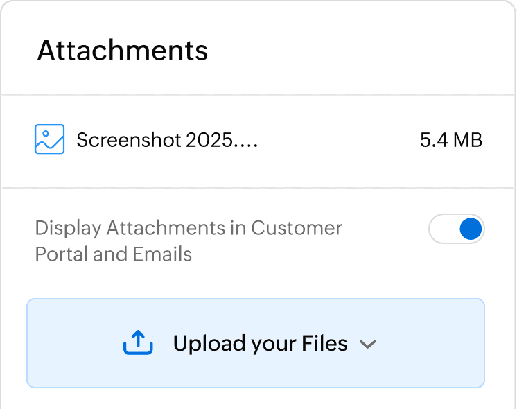 Customers can upload documents directly through the portal, and you can access them through the corresponding Zoho Books contact. Say goodbye to manually downloading and attaching reference documents to customers. Further, you can attach documents to transactions and choose to display them on the portal.